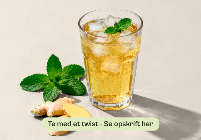 En frisk, mousserende te med citron - og et grønt pusterum 1 spsk. grøn te½ dl kogt vandEt par tynde skiver frisk ingefærSaften fra en lille skive citronEvt. en smule...