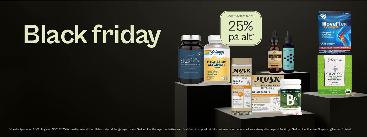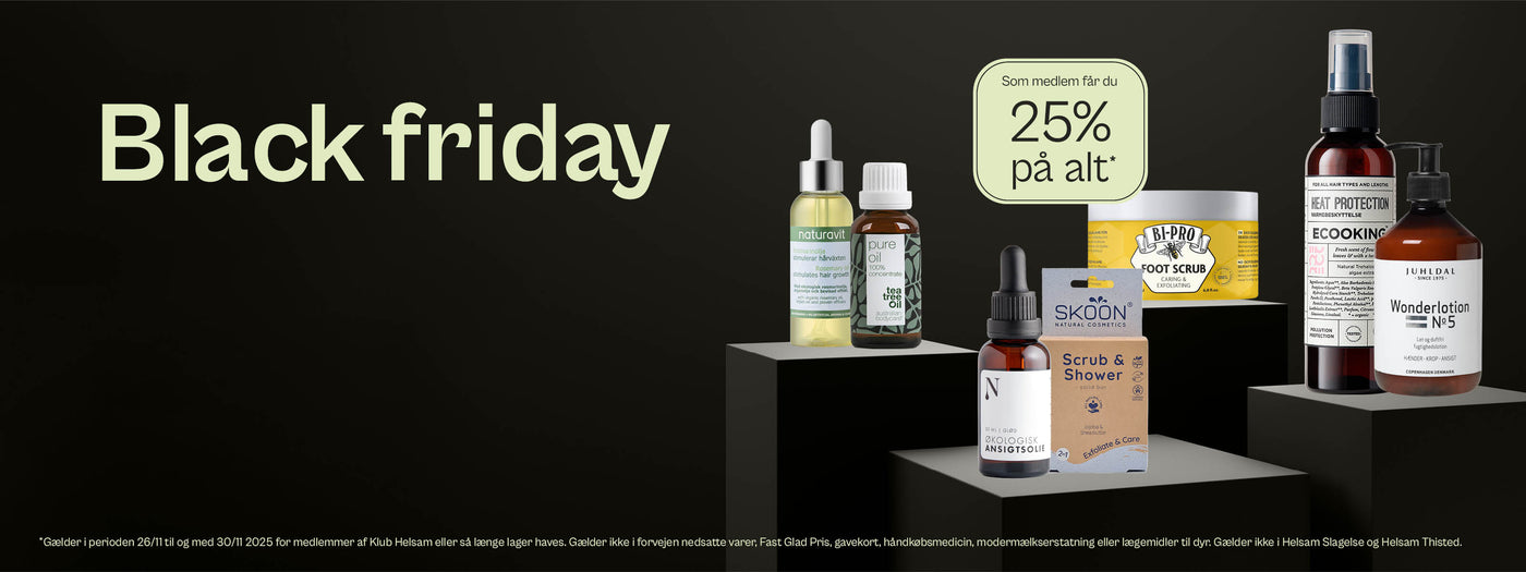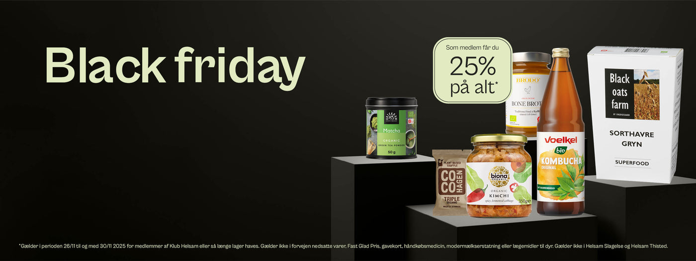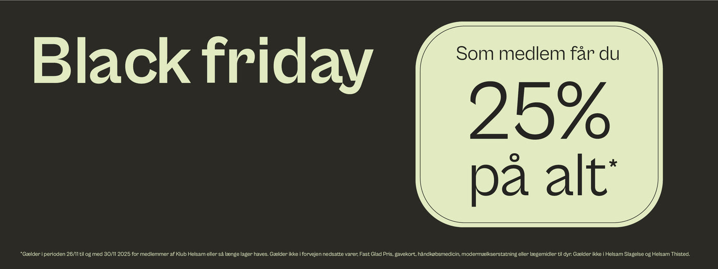 Som medlem får du 25% på alt* i butik og på Helsam.dk.