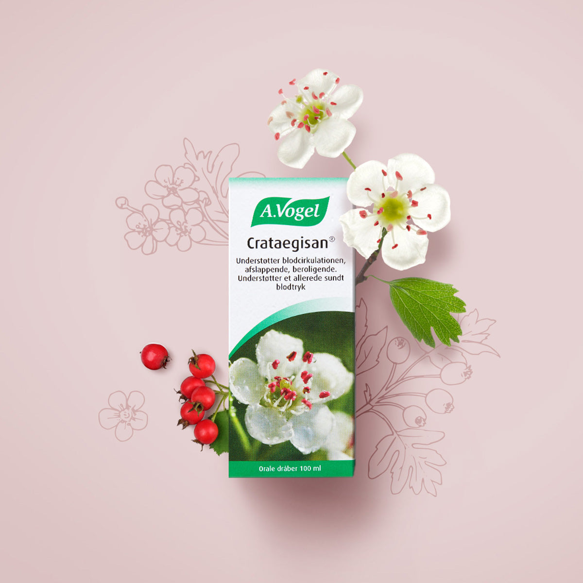 A.Vogel Crataegisan er et kosttilskud, der indeholder tinktur af friske hvidtjørnebær, der understøtter blodcirkulationen. Hvidtjørn virker afslappende og beroligende.