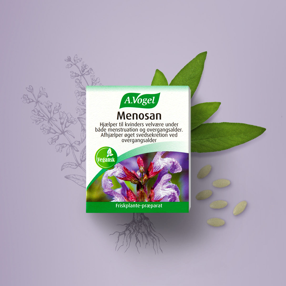 Har du det lidt for varmt? Oplever du perioder med forøget svedsekretion, for eksempel i forbindelse med overgangsalderen, er der hjælp at hente med en urt, du kender fra din egen køkkenhave. Den aktive ingrediens i Menosan er salvie, der mest er kendt for sin oplagte plads i urtehaven eller som staude.