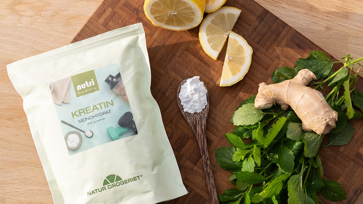 Kreatin findes i musklerne og optages via fødevarer som fx kød og fisk, hvilken øger den fysiske præstation ved gentagne kraftanstrengelser i forbindelse med kortvarig, højintensiv træning. Den gavnlige effekt opnås ved et dagligt indtag på 3 g kreatin.