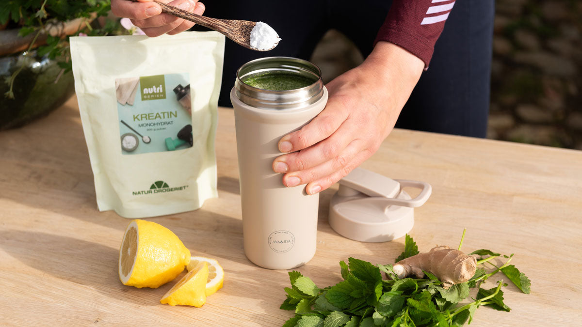 Kreatinpulver Natur-Drogeriet, til voksne der udøver højintensiv træning, velegnet til at blande i vand eller andre væsker. Det er et monohydrat, og ved indtagelse af den anbefalede daglige dosis får du 3,4 g kreatin monohydrat svarende til 3,0 g kreatin.