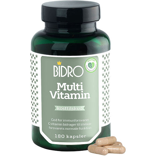 Bidro Multivitamin med 13 vitaminer, 10 mineraler og Rosenrod og Schisandra - to adaptogene urter.