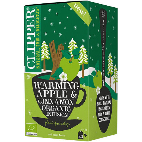 Clipper Warming Apple & Cinnamon Organic Infusion er en økologisk urtete med æble og kanel, og er smagen af bedstemors friskbagte æbletærte i en dampende varm kop te. Skøn nydelse på en kold dag.