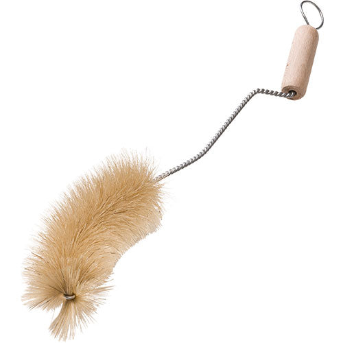 Fibrene på flaskebørsten i naturlige materialers børste er lavet af lyse dyrehår. Håndtaget er af træ og er drejeligt, så børsten nemt kan drejes rundt i flasken.