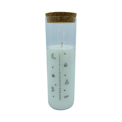 Sødt kalenderlys af ren rapsvoks, som danner færre partikler ved forbrænding. Med over 100 timers brændetid som skaber den perfekte hyggelige stemning. Glascylinderen kan bruge til andet efter jul. Håndlavet på værksted i Danmark.