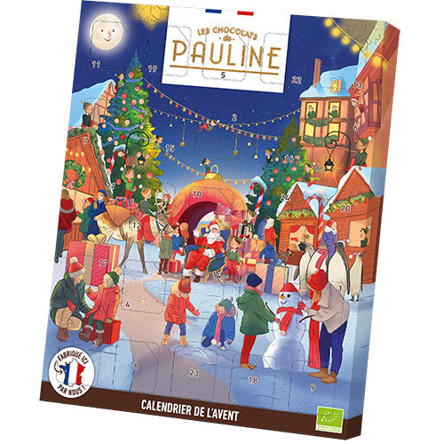 Den fineste chokoladejulekalender til børn. Mælkechokoladefigurer og slikkepind, mælkechokolade firkanter fyldt med mælke- & hvid chokolade, mørke chokoladefigurer og poppede cereals, fyldt og overtrukket med mælkechokolade.