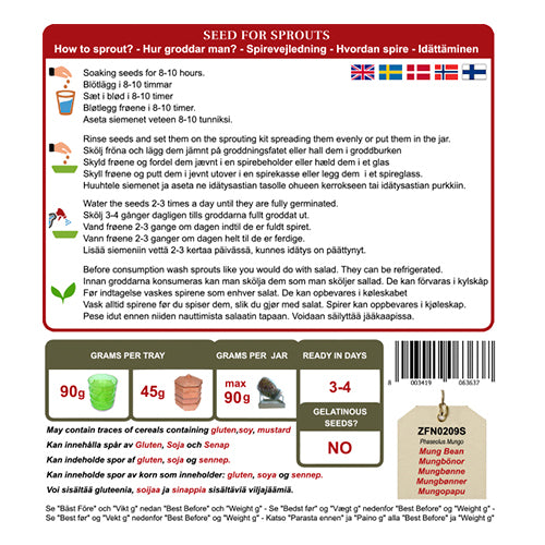 Økologiske mungbønner til spiring giver lækre spirer, som smager af friske ærter med et strejf af icebergsalat. Det klæder enhver salat eller sandwich.