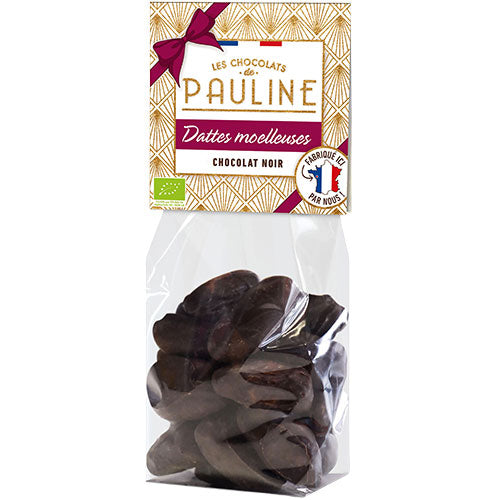 Lækre økologiske dadler overtrukket med den mest indbydende mørke chokolade.